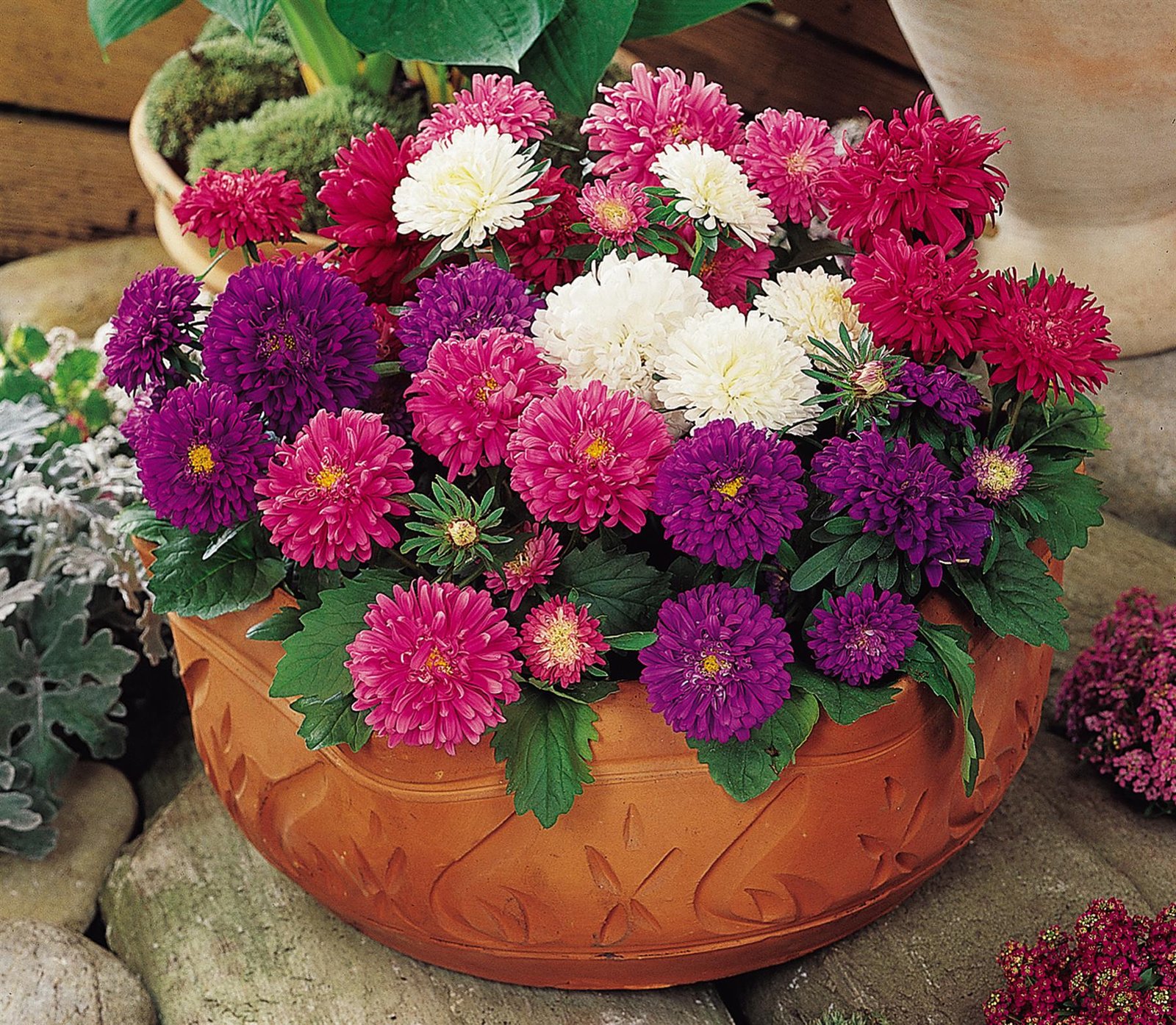 This compact dwarf plant produce masses of chrysanthemum-type flower upto 10cm across. The flowers last from July to September. Ideal for pots and as a bedding plant. Height 25cm -30cm