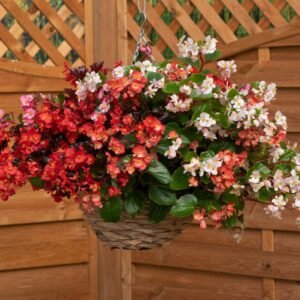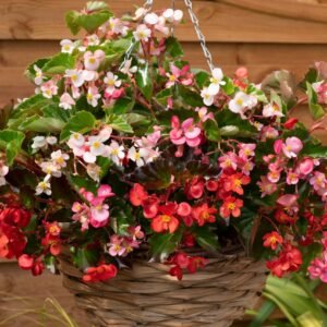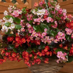 This is the first hanging basket type semperflorens Begonia with its trailing and spreading habit. The plants are vey branched which means there are lots of flowers. They can be grown in window boxes, patio pots, hanging baskets and even as a ground cover plant. This mix contains lots of shades including red, pink, purple and white flowers.