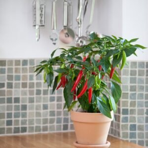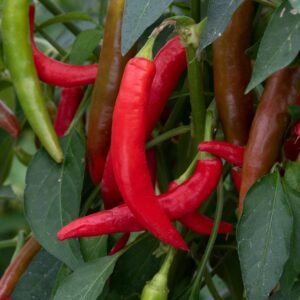 This chilli pepper has been breed primarily for ornamental purposes with it slender fruits that mature to a fiery red. Ideal for indoor or outdoor use.
