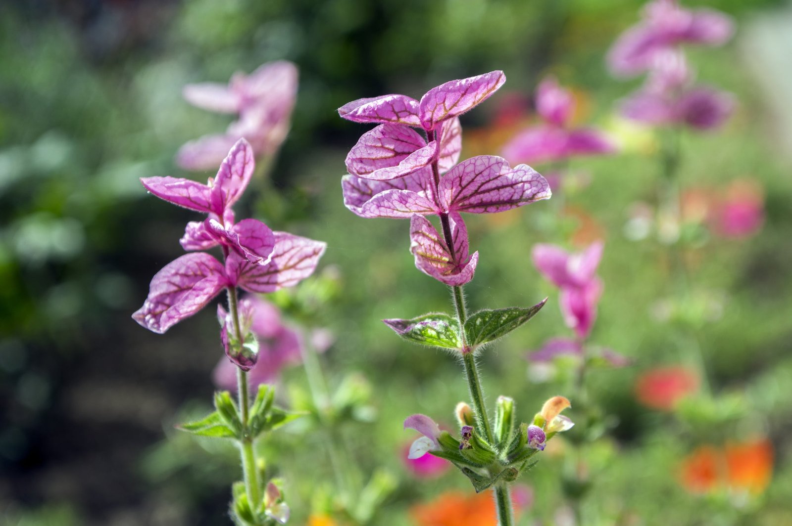 This lovely variety has rosy-carmine bracts. It is a biennial but does much better as an annual bedding plant. It is used in dried flower arrangements.