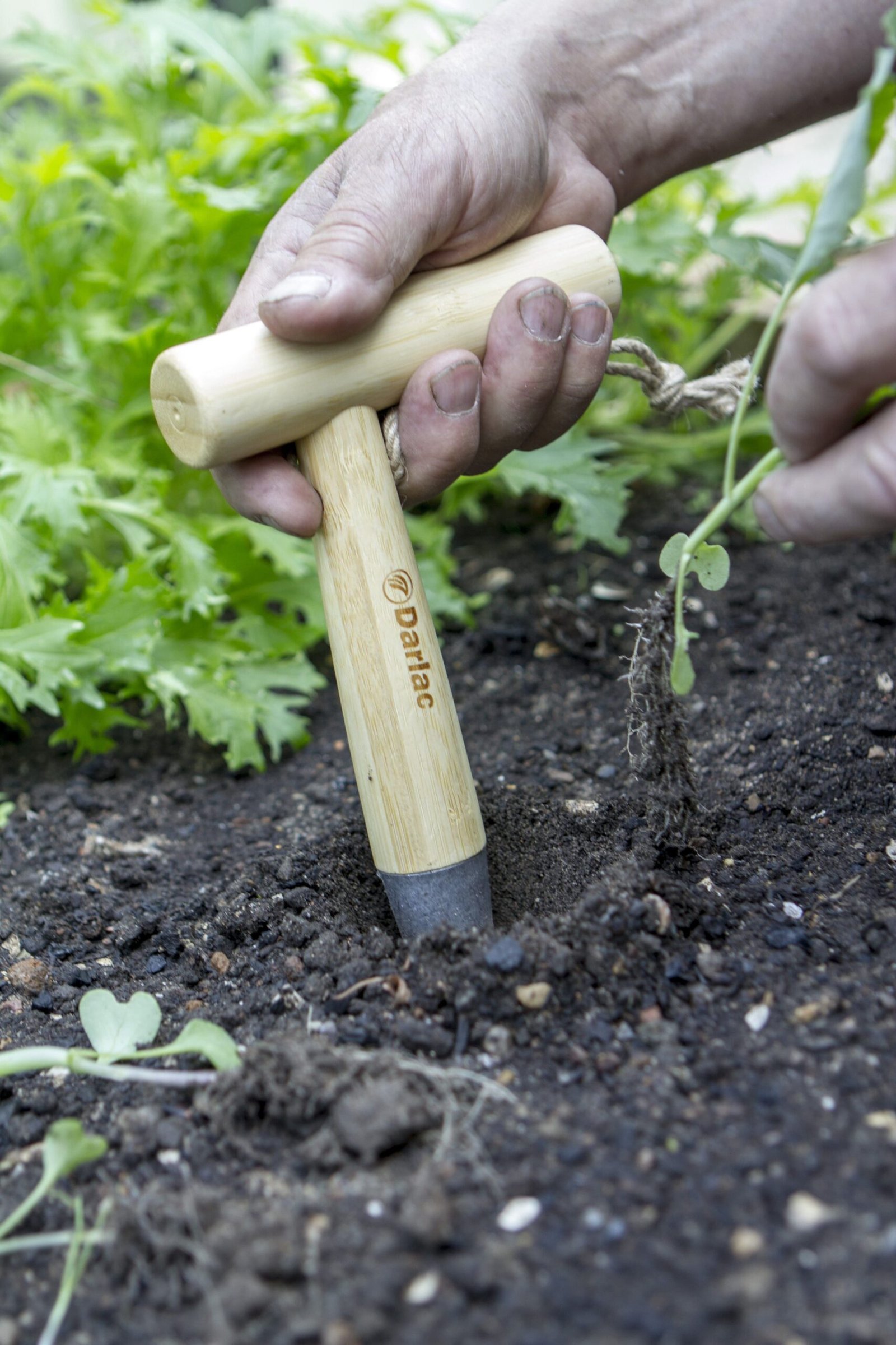 With depth gauge for planting bulbs and seeds. Offset handle for comfort & control.