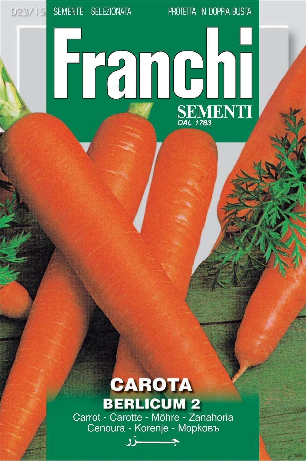 CARROT BERLICUM Mid late. Vigorous, productive plant with a good sized cylindrical root and small core. Tender but crunchy.