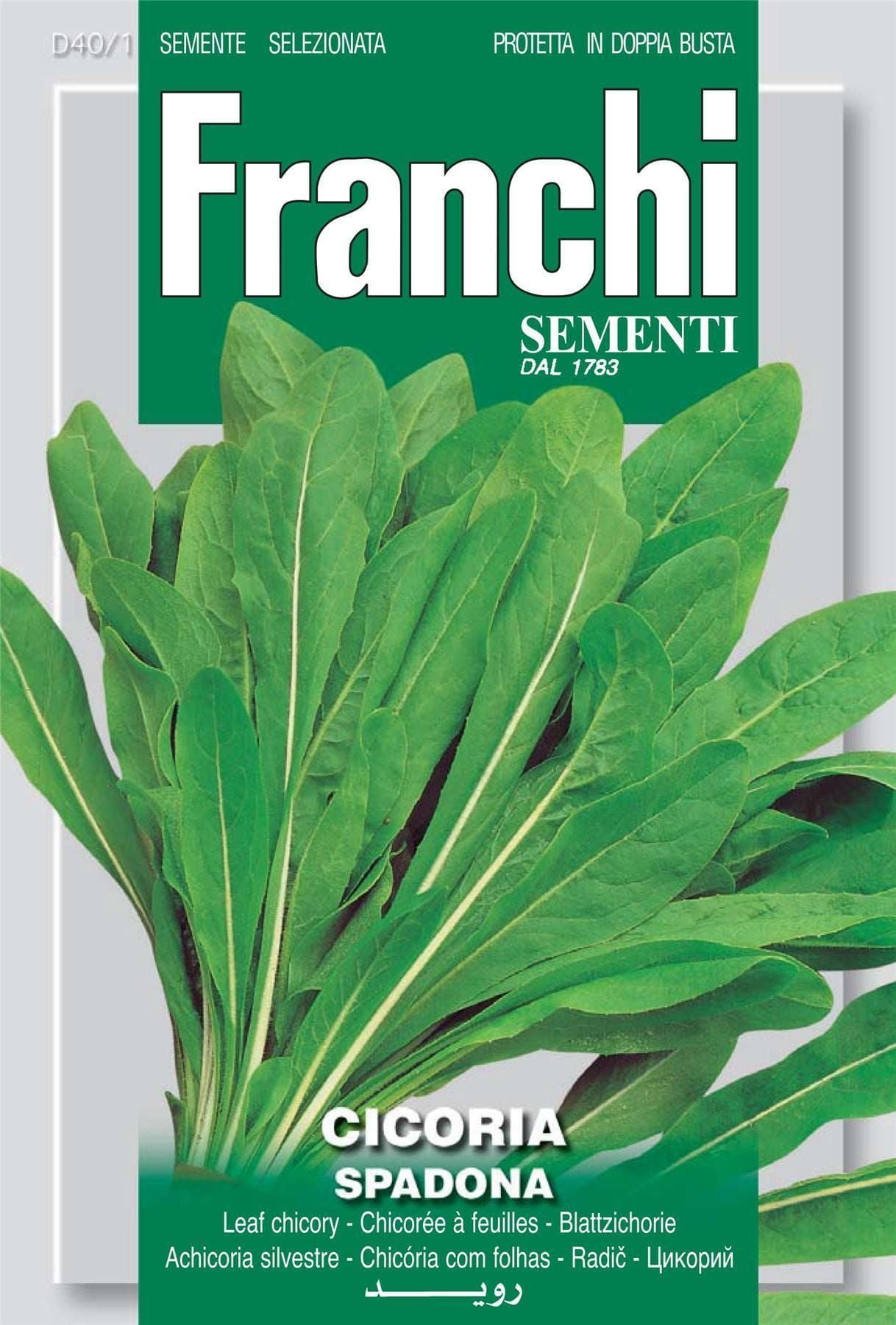 CHICORY SPADONA � Mid-early. Upright rustic plant. Long green leaves with light blond spine. Intense bitter sweet flavour. Cut and come again.