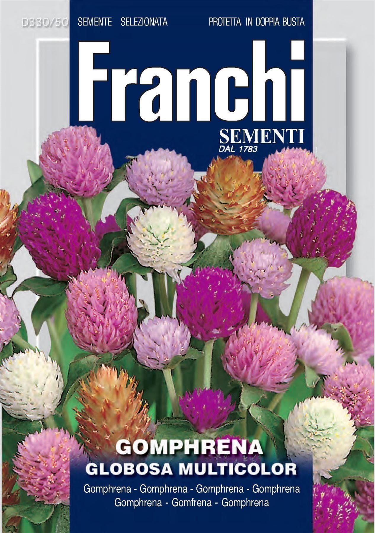 GOMPHRENA GLOBOSA MULICOLOUR- annual plant about 40 cm tall, easy to cultivate. Produces lots of different colourful flowers and id ideal for flowers-beds and for cutting.