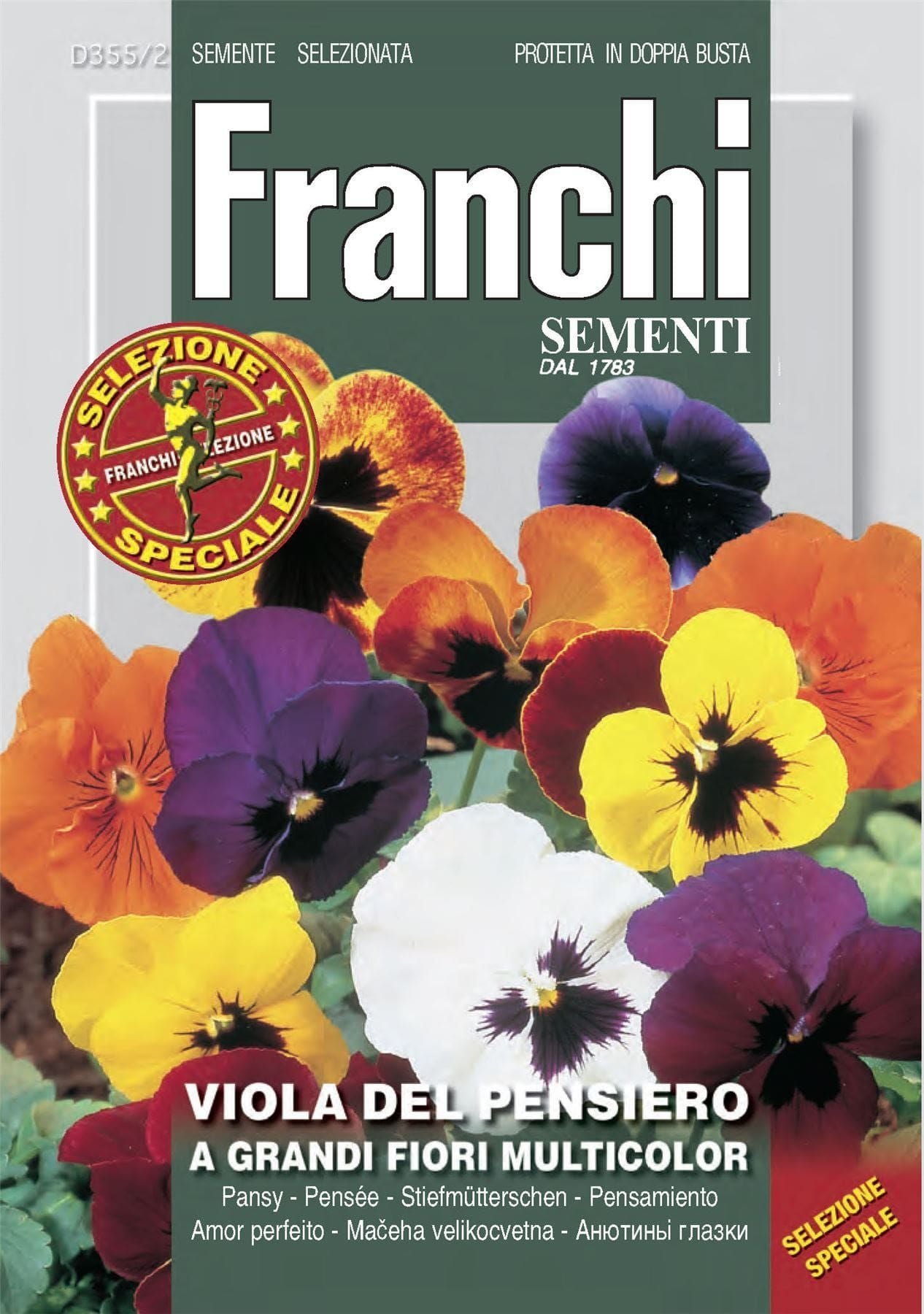 VIOLET DEL PENSIERO WITH BIG FLOWERS MULTICOLOUR – vigorous plant with many different colourful flowers. Good to the borders. Can be cultivate in the vase on the balcony. Low temperature resistant.