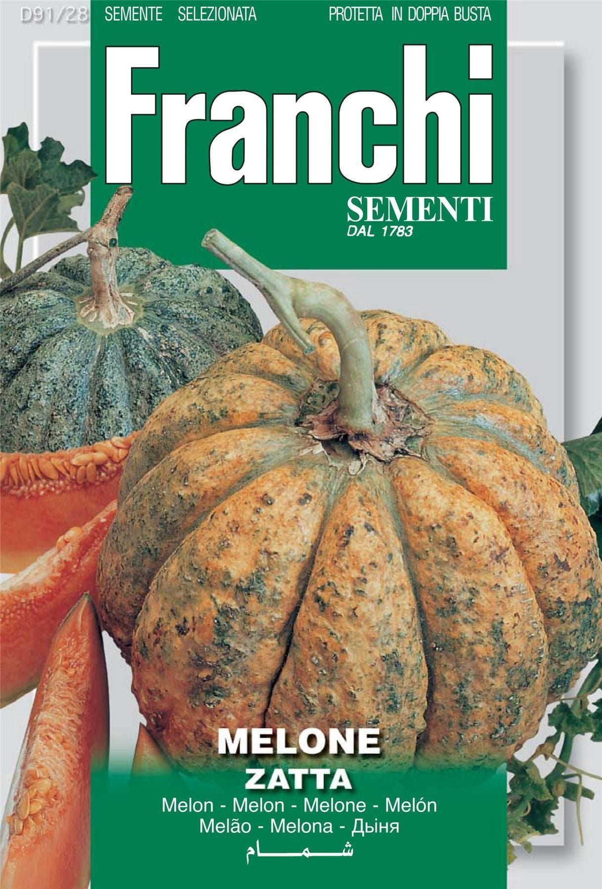 MELONE ZATTA- mid early variety, Big, round and crushed on the aside with long through. The peel is thick. The pulp is orange, very juicy and sweet.