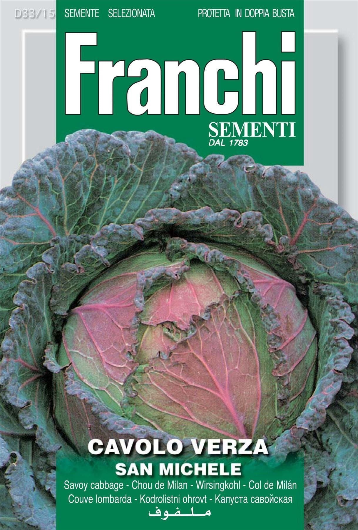SAVOY CABBAGE ST. MICHELE Late. Round, tightly wrapped head with erect, slightly blistered leaves. Their colour is green with purple/red hazing. Ideal for winter cultivation.