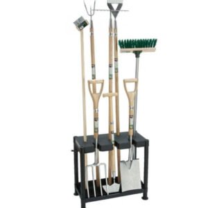 This Garden Tool Tidy is ideal for the shed or garage, it holds many common garden tools at once and is suitable for use with spades, forks, rakes, brooms etc. Its compact size ensures that tools can be easily removed even in the shed. The tool tidy is quick and easy to assemble (no tools required) or for a super secure fix you can use the clips supplied to fix the unit back to the wall (minimal tools required). We strongly recommend you screw the shelf unit back to a solid surface especially if loading them with top heavy tools.