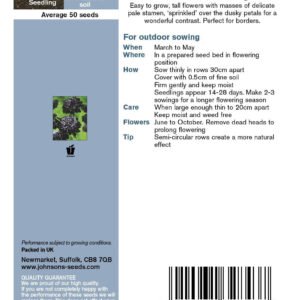 Easy to grow, tall double flowers with masses of delicate pale stamen that appear sprinkled over the dusky petals, creating a wonderful contrast. A classic variety for mixed ‘cottage garden’ borders.