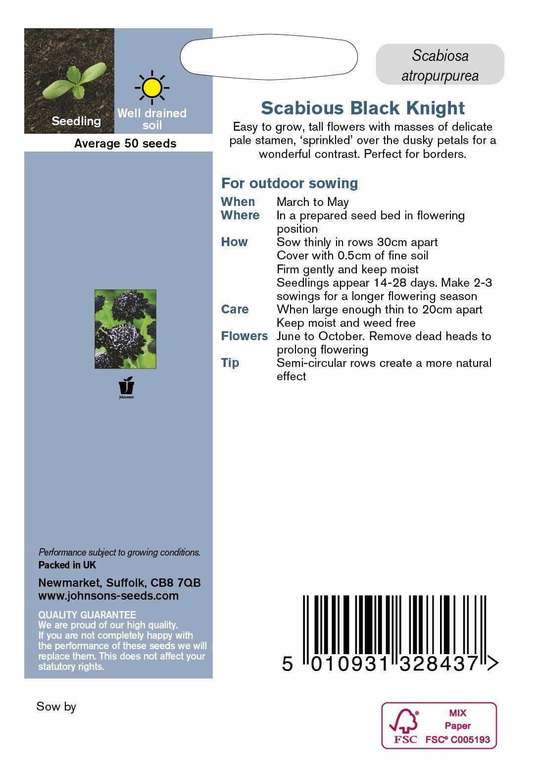 Johnson Seeds – Flower – Scabious Black Knight – 50 Seeds