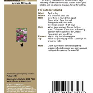 Charming old-fashioned favourites with large intricately marked and coloured blooms which give reliable and long-lasting displays. Great for cutting. Sow from April to July. Full details on packet.