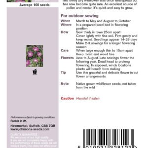 With narrow grey/green leaves its open funnel-shaped magenta-purple flowers look stunning in beds and borders and are perfect for wildlife gardens. Ideal for cut flowers.