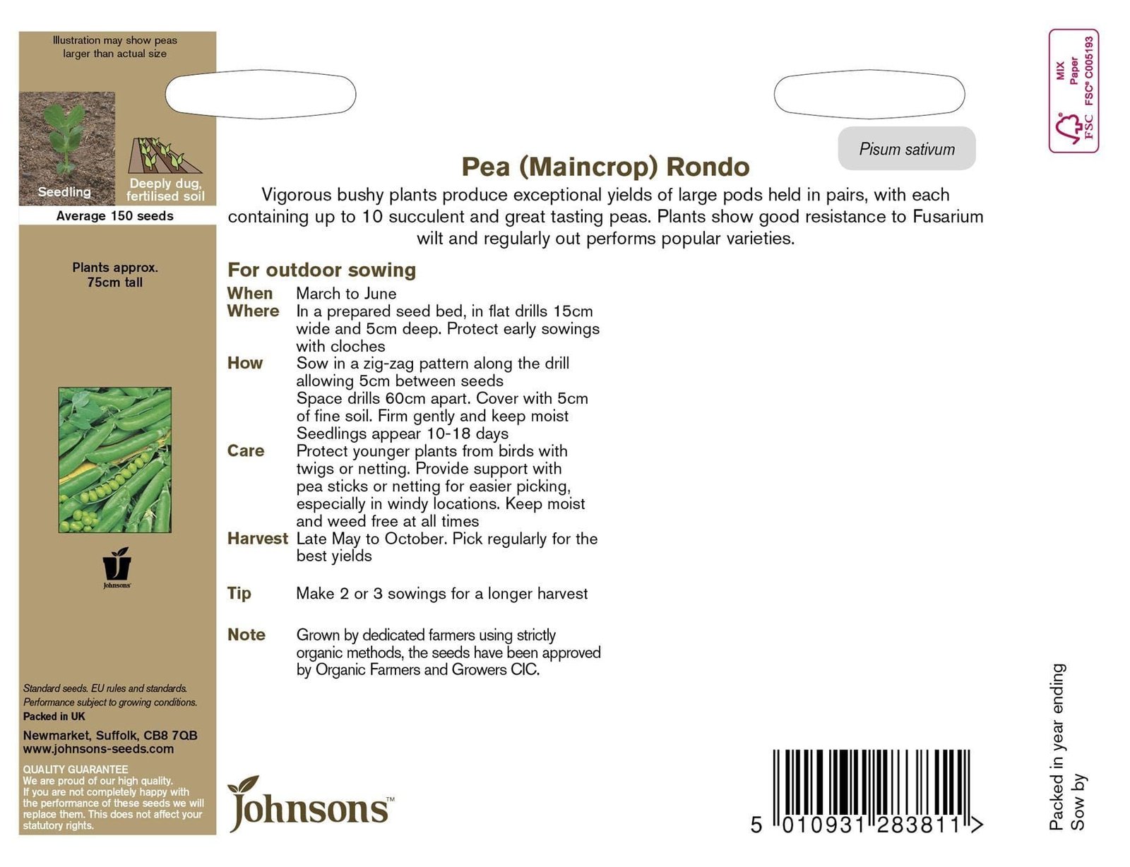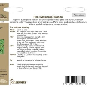 Vigorous bushy plants produce exceptional yields of large pods held in pairs, with each containing up to 10 succulent and great tasting peas. Plants show good resistance to Fusarium wilt and regularly out performs popular varieties