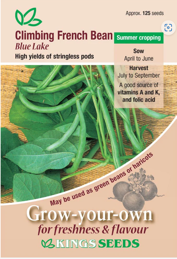 Blue Lake can reach up to 1.5m in height. They produce pencil-podded, stringless, medium green pods containing pure white beans within. The beans can be used as haricot beans at the end of the season. Climbing varieties such as this one should be supported in the same way that you would if they were runner beans.