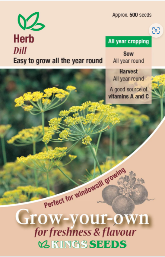 Dill seeds are a common ingredient in pickles and sauces. It goes perfectly with fish dishes and can be mixed with mayonnaise to create a really tasty addition to a sandwich. It requires a site in full sun to give its best yield and will grow to a height of about 90cm (36″).