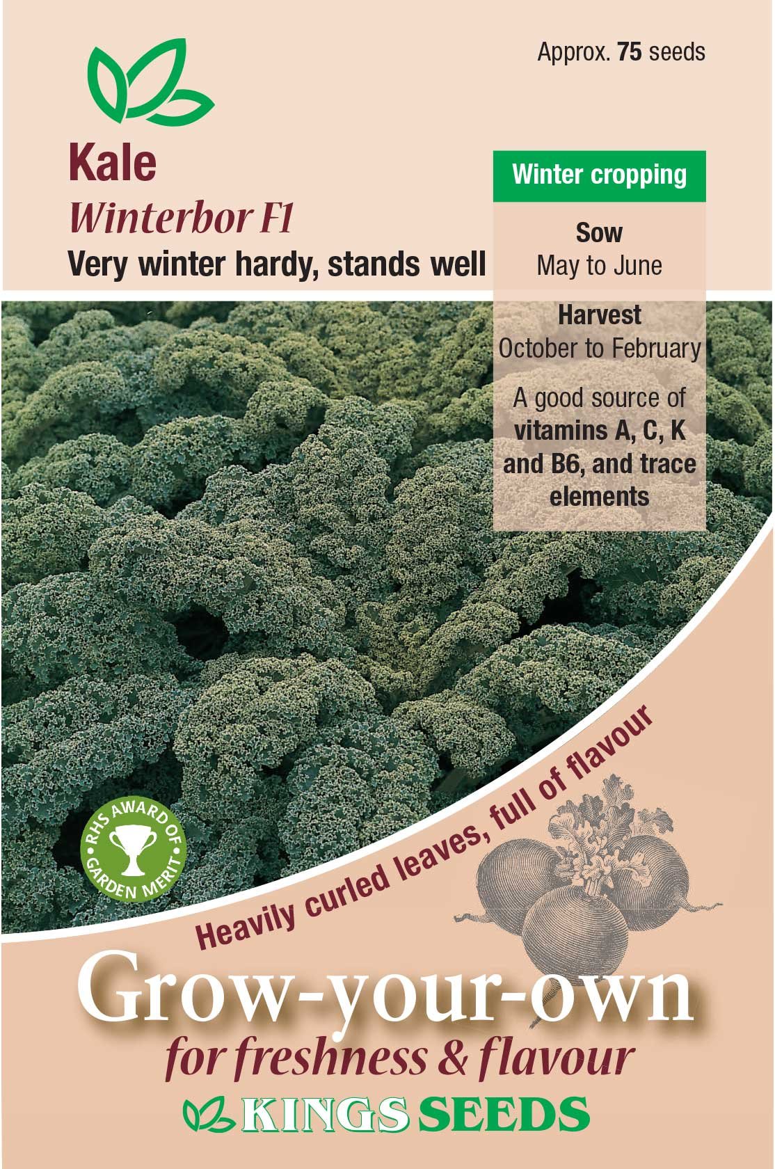 A hybrid variety bred for its winter hardiness. Produces a mass of dark blue/green heavily curled leaves for late autumn and winter cutting.