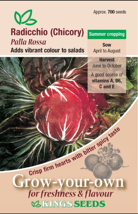 Palla Rossa is often called “Radicchio” in Britain. This variety has firm hearts with red/maroon and white leaves for colour in salads. Sow April to August