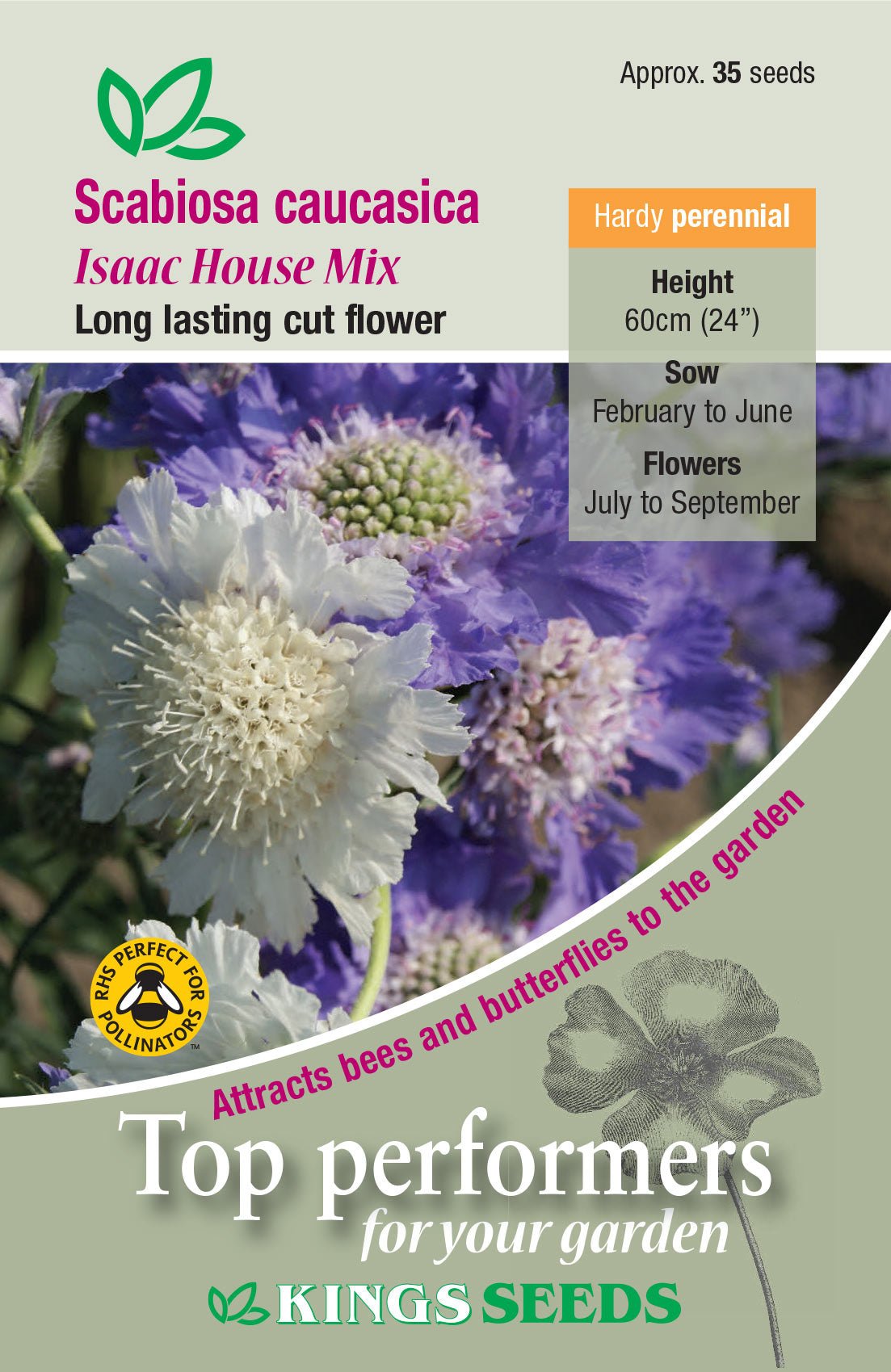 Large delicate single and double flowers in shades of blue, violet and white. Long lasting cut flower attracting bees and butterflies. Hardy Perennial Height: 60cm