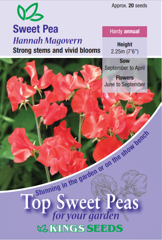 Strong stems with outstanding bright scarlet blooms, ideal for cutting and used on the showbench. Sweet peas are an easy flower to grow. They are undemanding and pretty well disease free but like most plants will benefit from good treatment.