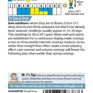 A classic, fast growing cottage garden favourite. Sown where it is to flower. Easy and reliable. Perfect for cut flowers, beds and borders. Height: 75cm(30in) Plant Class: Hardy Annual (HA).