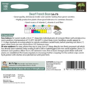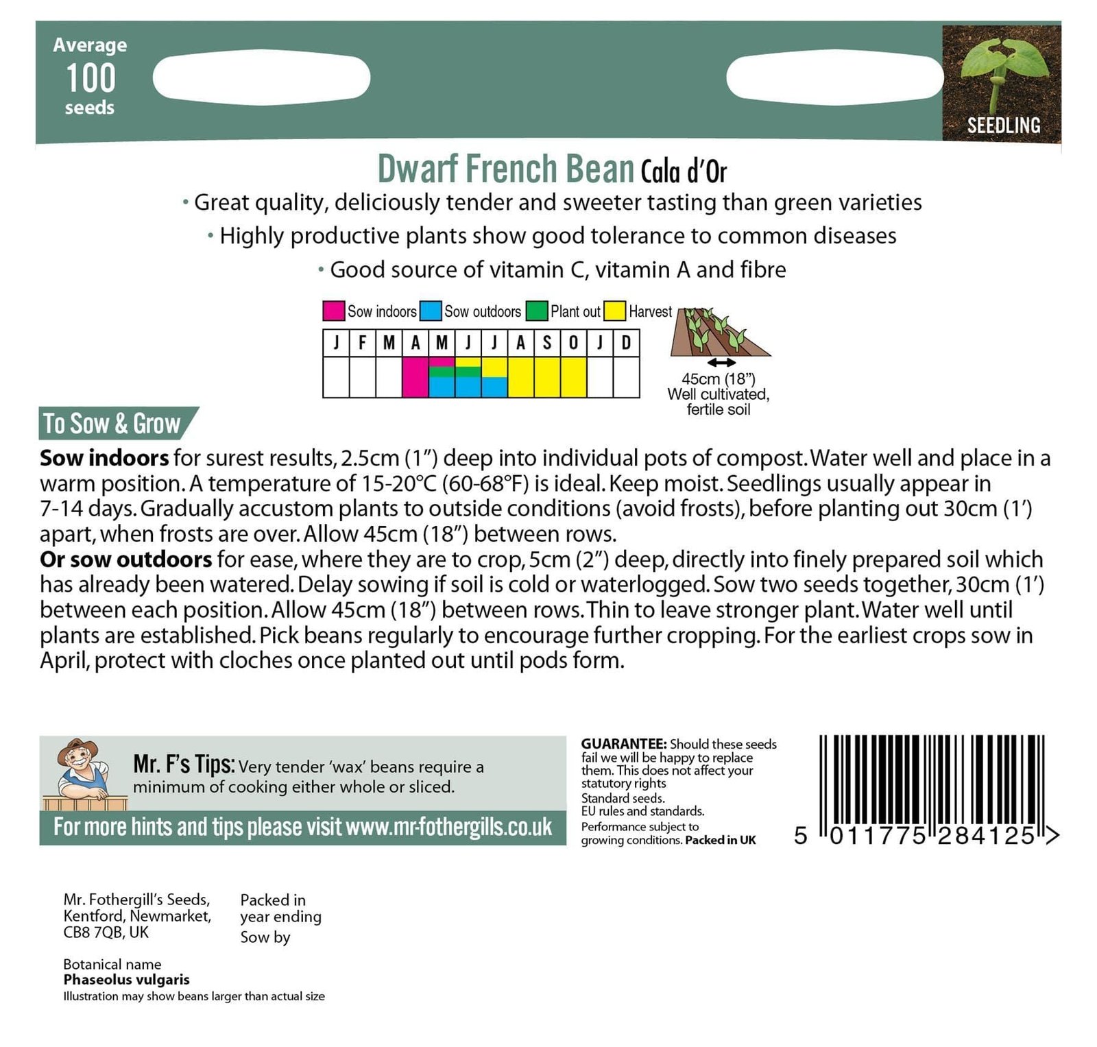 Mr Fothergills Dwarf French Bean Cala D’Or 100 Seeds