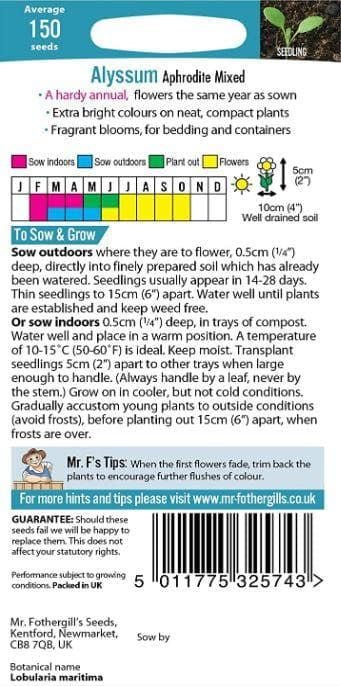 Mr Fothergills – Flower – Alyssum Aphrodite Mixed – 150 Seeds