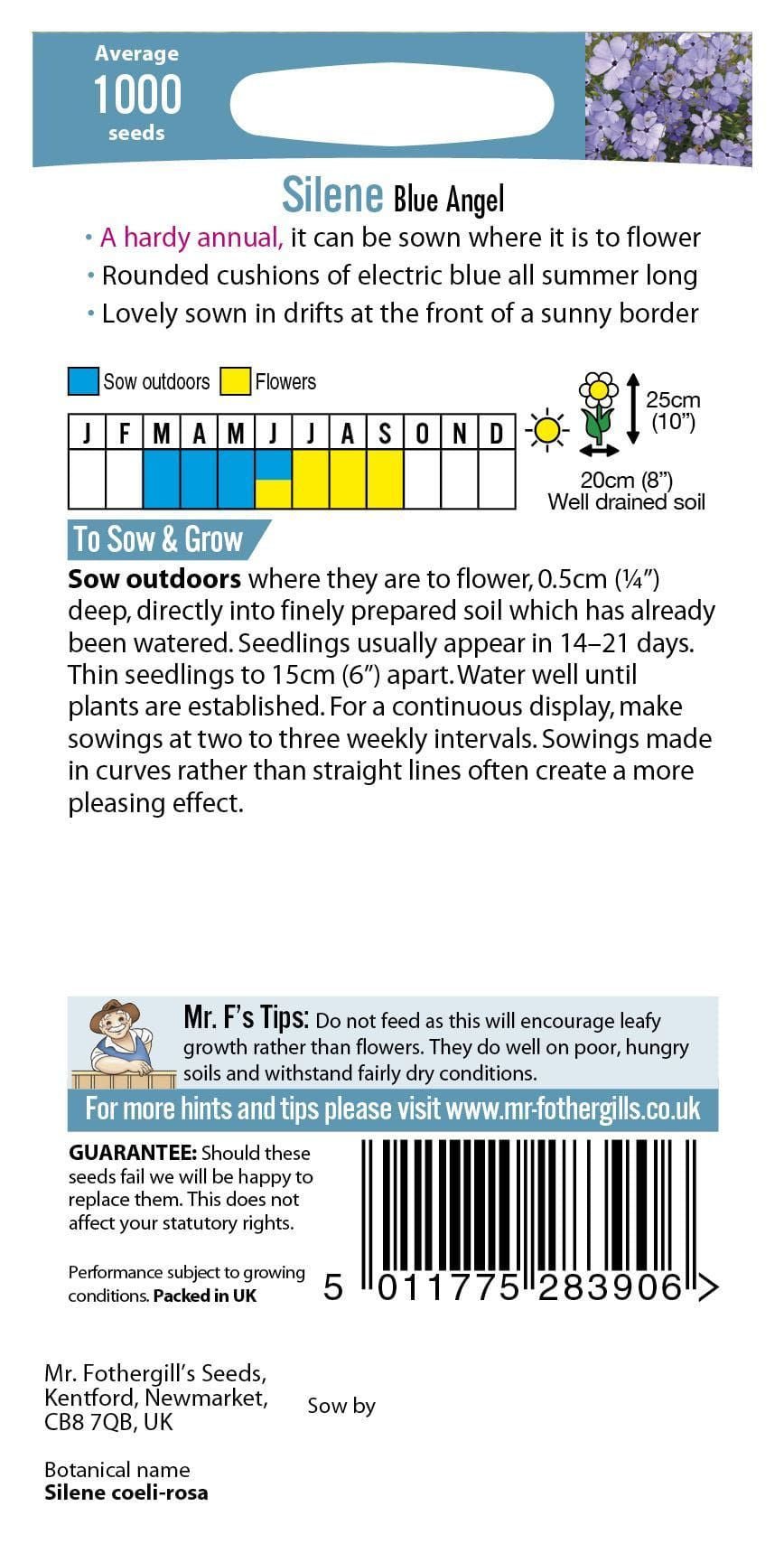 Rounded cushions of electric blue, all summer long. Lovely sown in drifts at the front of a sunny border. Height: 25cm(10in) Plant. Hardy Annual (HA).