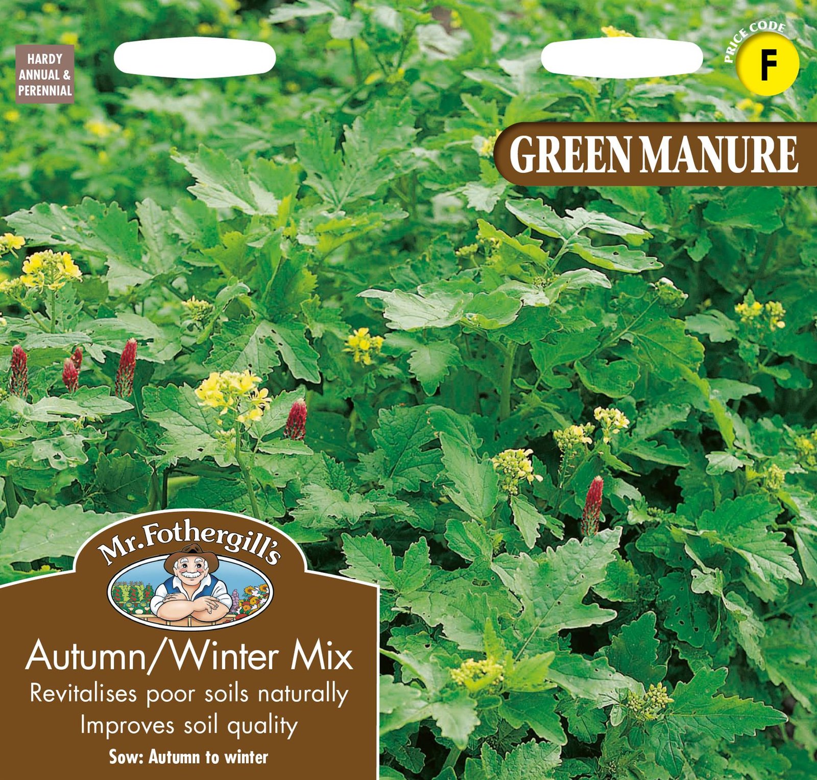 This mix includes clovers to fix nitrogen in the soil, providing nutrients for crops.� Also contains rye grass and white mustard to improve soil structure.� Prevents nutrients being washed away and adds valuable organic material.� Can be mown before flowering to extend the cover period. Leave plants in the ground until soil is required for use but do not let them set seed.