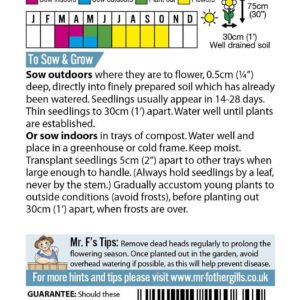 These bold and bright colourful ‘Cactus’ and ‘Dahlia’ style blooms will be your new garden favourite! Idea for beds and borders they will flower the same year as sown. They have a long flowering season and very easy to grow in the UK climate. Suitable for a cut flower display. Height: 75cm Half Hardy Annual
