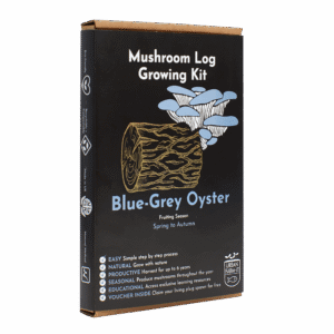 The blue grey oyster mushroom is a distinctive blue to grey colour, they have a soft texture and slightly meaty taste. This kit allows you to grow the mushrooms in a natural way with your own hardwood log and mushroom dowels.