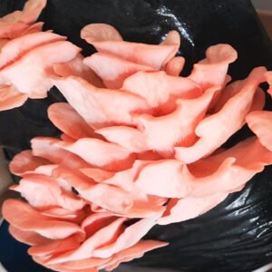 The Pink oyster mushroom is a distinctive pink colour, they have delicate bacon / ham flavour which intensifies when cooked