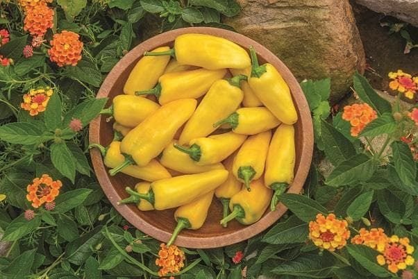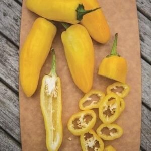 This variety produces glossy, super-bright yellow tapered peppers that grow up to 8cm and are full of flavour. The plants grow up to 46cm tall and are prolific, producing fruit for longer than many other varieties.