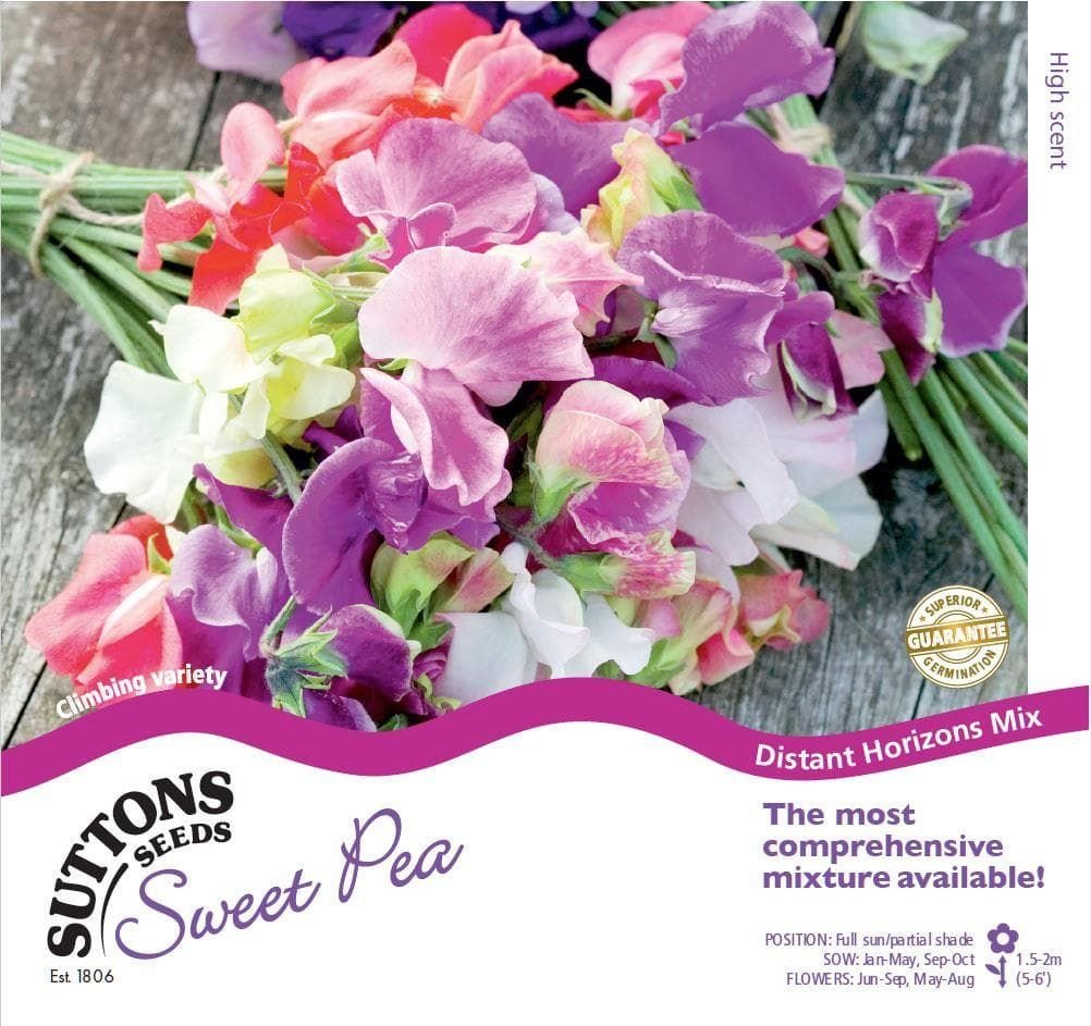 Founded in 1806 Suttons Seeds has become one of the countries best loved brands. When you buy Suttons Seeds you can expect the highest quality seeds that will be in top condition. We are delighted to include the Suttons range among the large range we are offering our customers. This popular item is :Sweet Pea Seeds – Distant Horizons