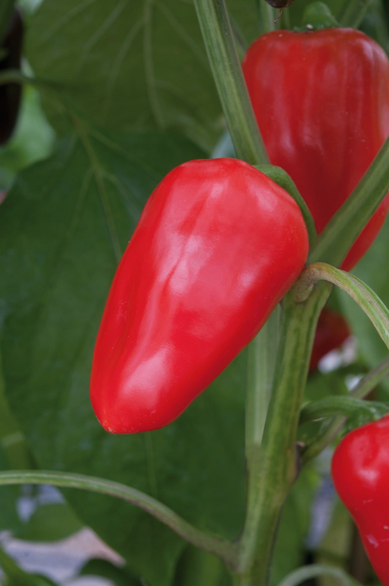This sweet bell pepper produces small red fruits (6 x 3.5cm) that are ideal for kids’ lunch boxes. The plants grow to a height of 40-45cm, making them suitable for 12-17cm pot production.