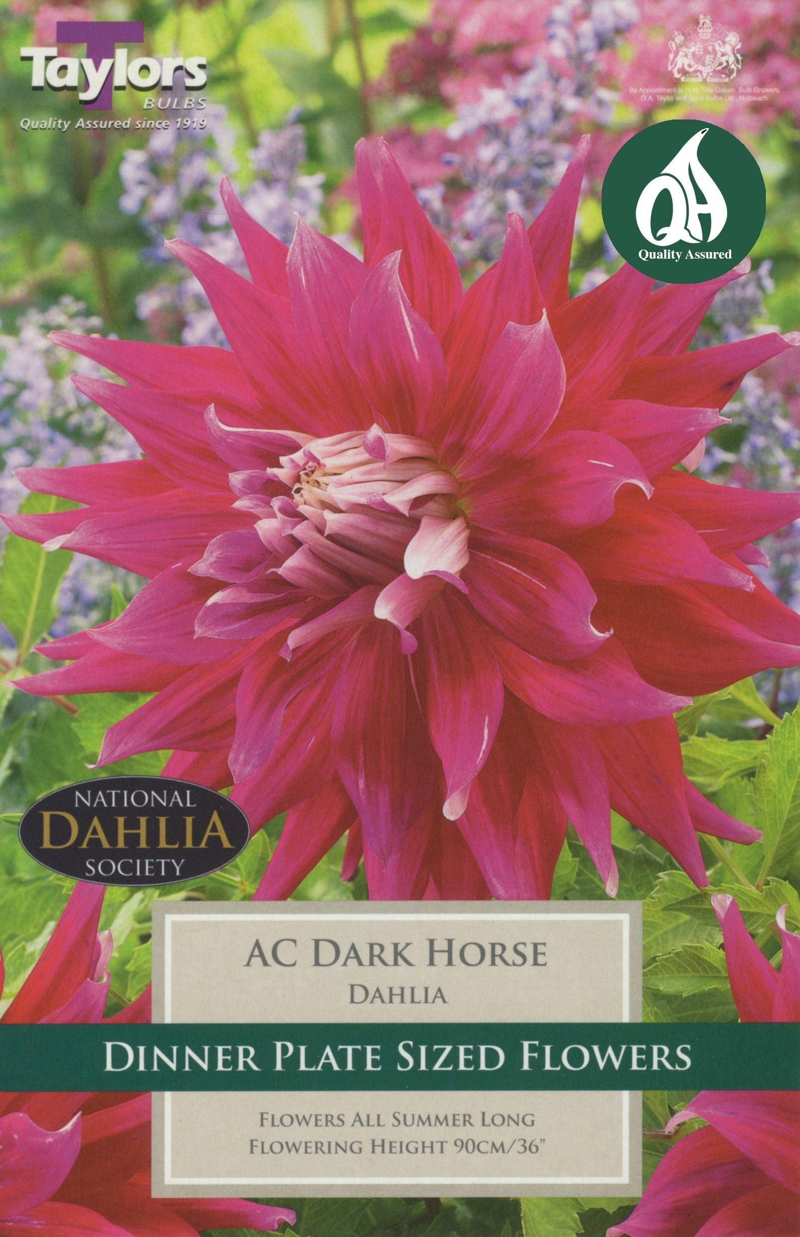Dark pink giant flowers with pale pink tips. Decorative. Recommended by the National Dahlia Society.
