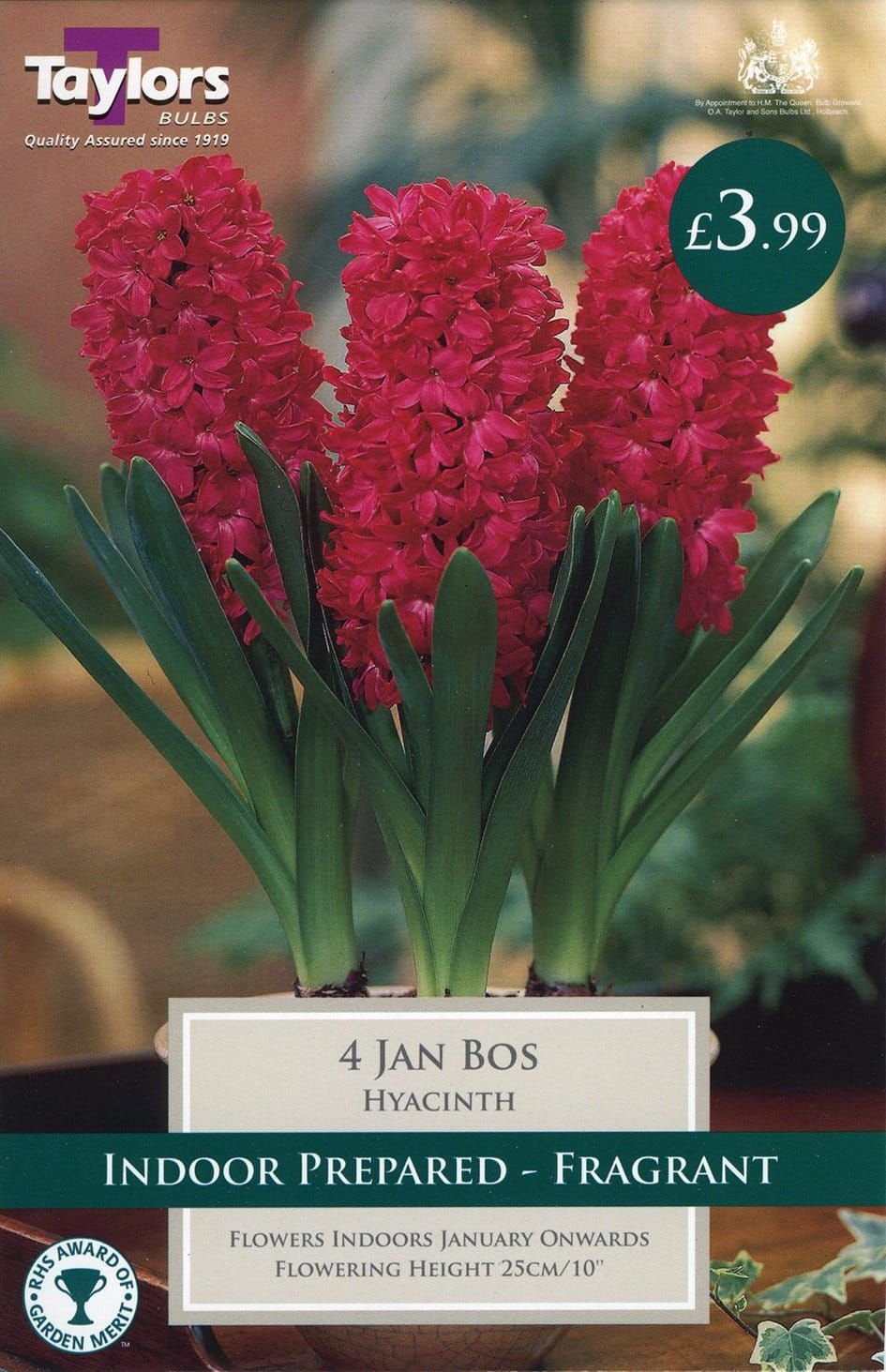 These prepared bulbs are ideal for early flowering indoors. JanBos is a frangrant Carmine Red. Plant in September for Christmas flowering
