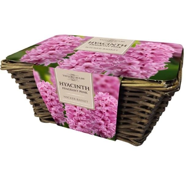 A Large Hyacinth Wicker Basket with 6 Pink Hyacinth Bulbs