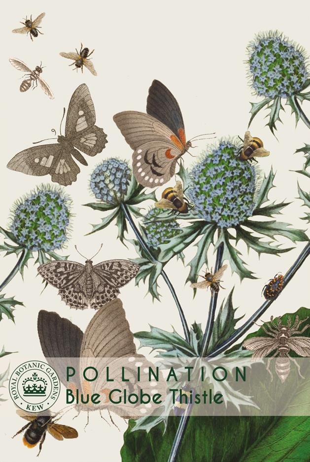 Small groups of rich blue flowers create compact spheres on lengthy, upright stems made of gleaming silver.