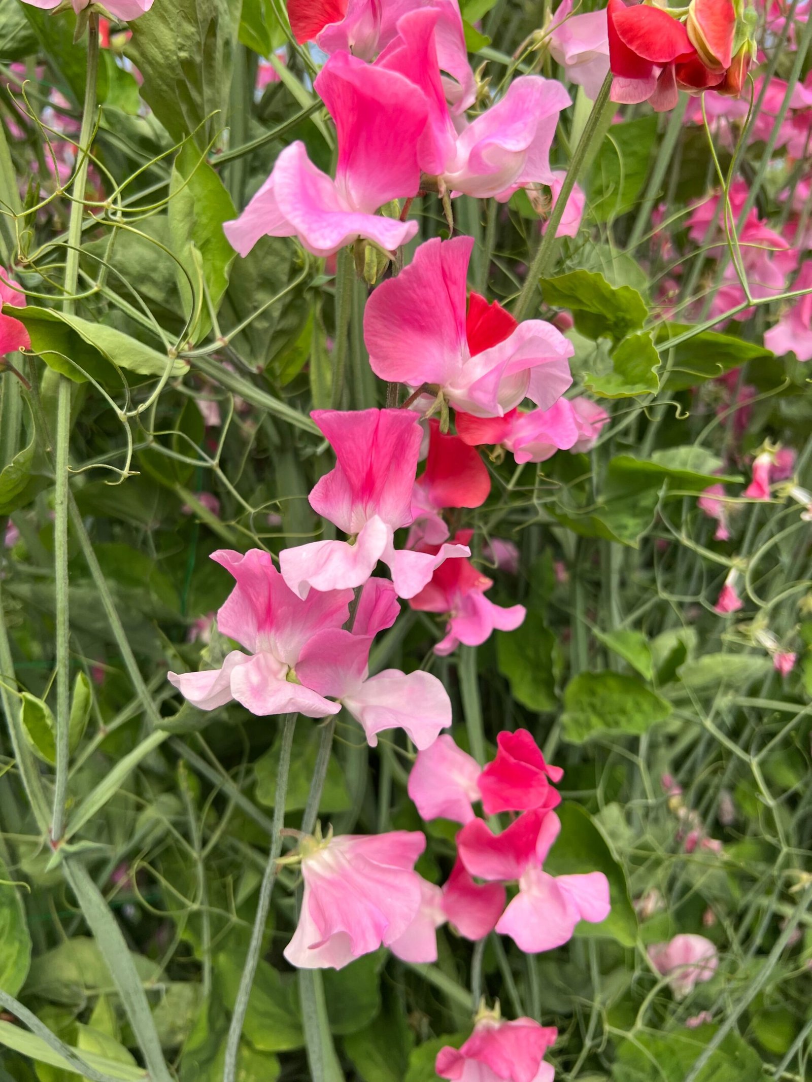 The Sweet Pea Duo Salmon is a sweet pea variety characterized by its vivid pink and salmon-red bicolored flowers and a robust fragrance.