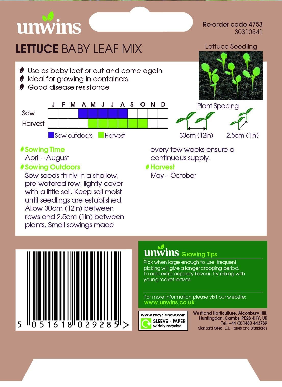 We have blended Red and Green Salad Bowl, Lollos Rossa and Biondi, and the curiously named Black Seeded Simpson lettuces to give you a plentiful supply of attractive and delicious leaves for summer salads.