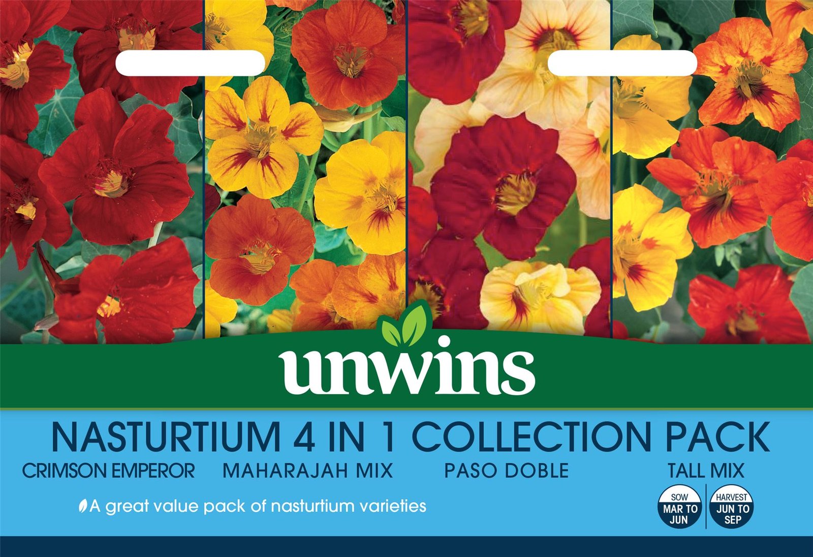 An unbeatable collection of bright and beautiful top performing varieties. Nasturtiums grow well in poor soils and will look stunning in beds, borders and growing up trellis in containers.