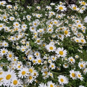 Scatter Oxeye Daisy Leucanthemum Vulgare Ox-eye daisy seeds it is a familiar and attractive grassland perennial plant. The distinctive wild flowers have a classic daisy-like appearance with white petals surrounding a yellow central disk. Watch as the bees and butterflies go flower to flower collecting the nectar.